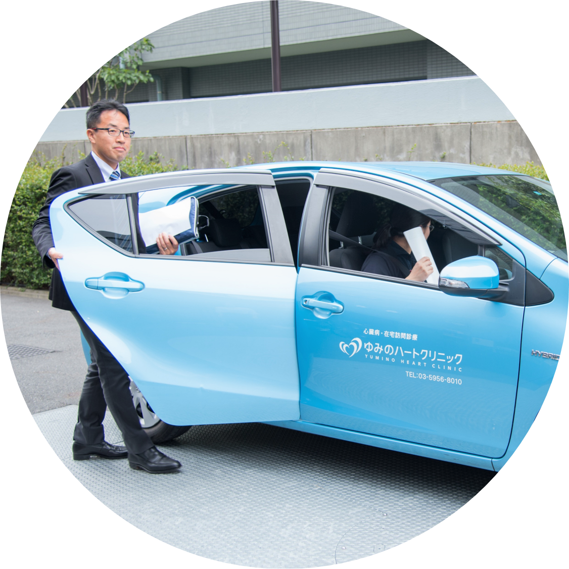 ゆみのハートクリニックでは、様々な診療科の医師と医療スタッフが、ご自宅に訪問し、患者さんの生活の質を保ちながら診療・ケアを行います。また、総合病院への外来や入院の数を減らし、患者さんご本人だけではなくご家族の負担も減らすようにします。